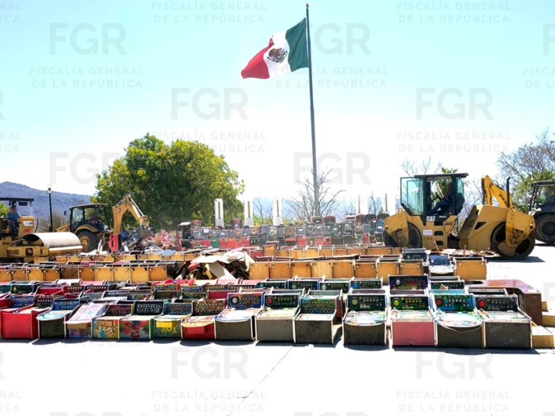 Activo en México: incineran cerca de 600 máquinas tragamonedas ilegales en Nayarit
